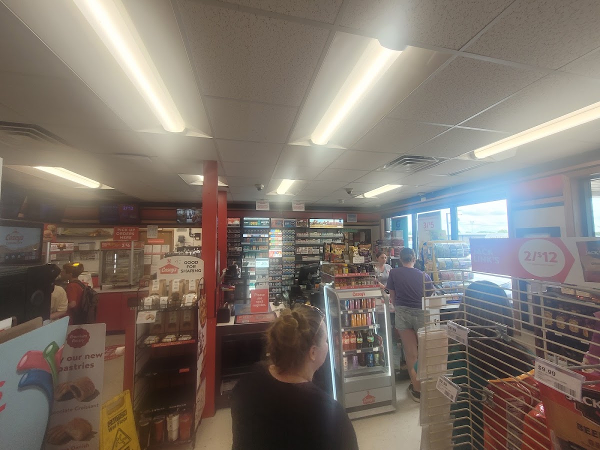 Nice pit stop for gas fill-up and just down the road from Interstate 55. Usual good tasting Casey's pizza, breakfast pizza, burgers, breakfast sandwiches, snacks, drinks of all kinds and good donuts. Restrooms are available and some automotive needs are here, also some medicines for headache, etc...